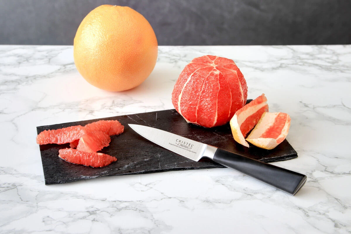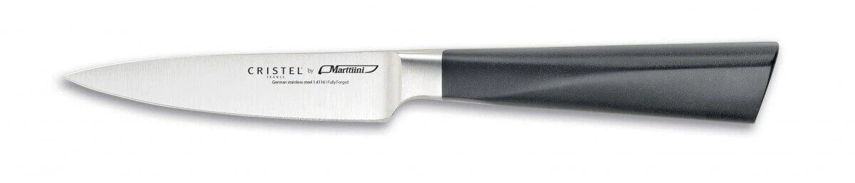 Voor de messenlijn heeft het Franse pannenmerk Cristel de hulp ingeroepen van het Finse Marttiini, dat sinds 1928 messen produceert. Het staal dat gebruikt wordt voor de messen wordt in het Duitse Solingen gesmeed. De kunststof greep is eenvoudig in onderhoud en erg robuust. Elk van de messen heeft voor het heeft een zogeheten krop, waardoor zich geen vuil kan ophopen tussen lemmet en heft, en de gewichtsverdeling van het mes prettig is. De Cristel Marttiini messen worden geleverd met een beschermhoes om het lemmet en uw vingers te beschermen.