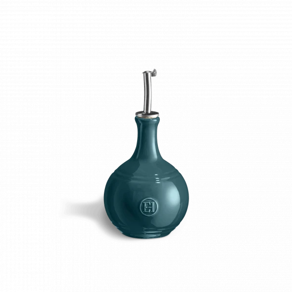 Met de Emile Henry azijnfles bewaart en serveert u azijn op zeer luxe wijze. De kan heeft een inhoud van 400 ml, is gemaakt van donkergroen keramiek en voorzien van een roestvrijstalen schenktuit. Gebruik de Emile Henry azijnfles voor het doseren en serveren van azijn.