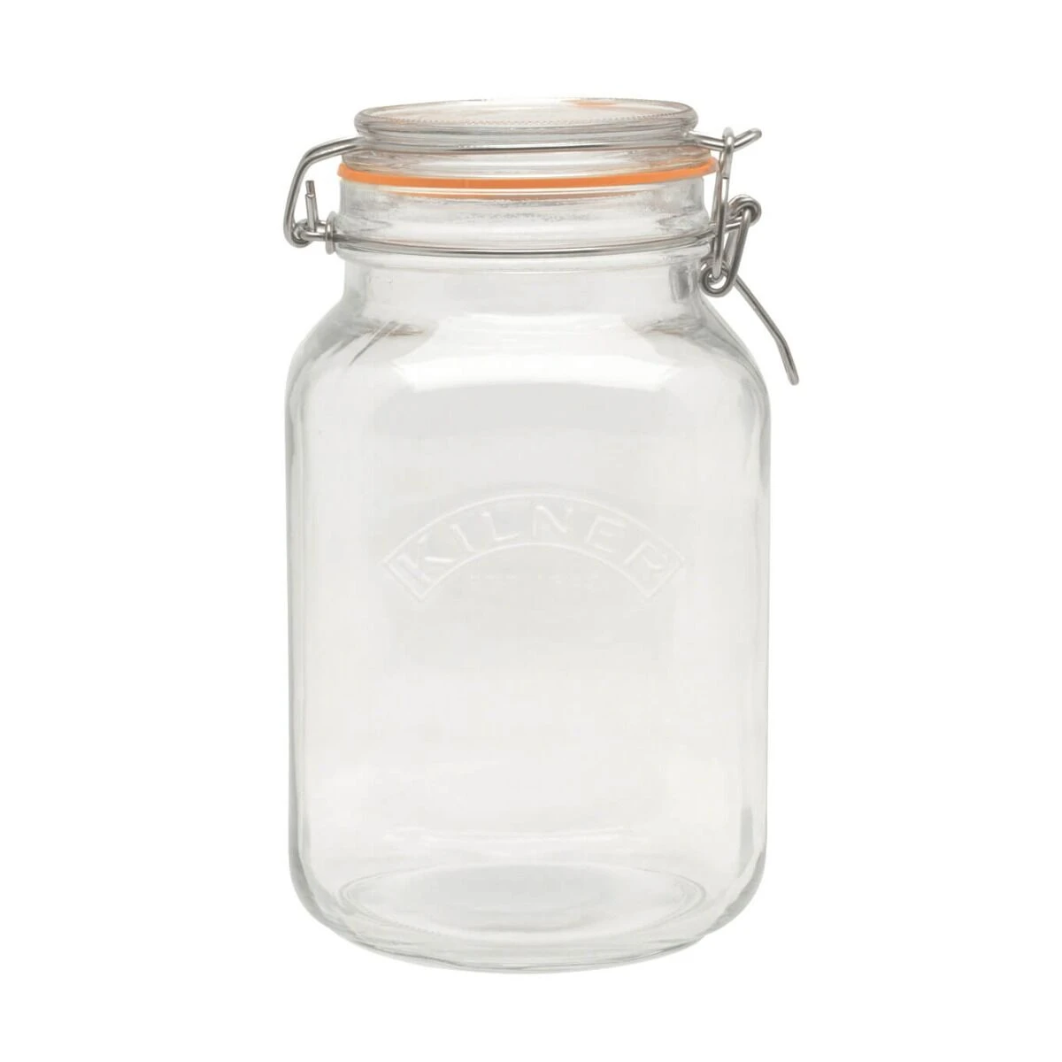 De Kilner weckpot met beugel is vervaardigd uit glas en heeft een inhoud van 2 liter. De weckpot heeft een hoogte van 21,5 cm en een breedte van 12 cm. Gebruik voor het wecken of inmaken van fruit of groenten. De oranje weckring zorgt ervoor dat de pot luchtdicht wordt afgesloten.