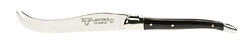 Het Laguiole en Aubrac kaasmes heeft een lemmet van messenstaal met een lengte van 10 cm. Het heft is van diepzwart gekleurd buffelhoorn. Het totale mes is 20 cm lang. Voor het snijden van kazen. Met het getande uiteinde prikt u kaas eenvoudig op het mes.