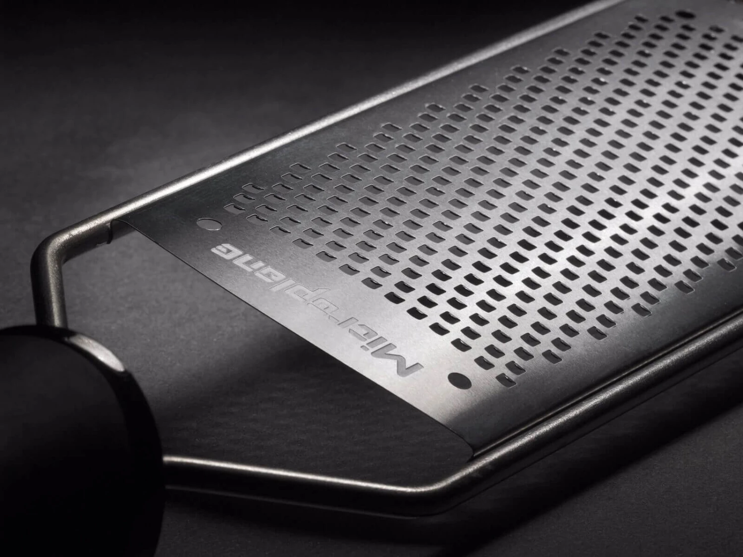 De Microplane rasp is door een laser uitgesneden en behoudt hierdoor lang zijn scherpte. De rasp is voorzien van een ophangoog en een antislipuiteinde.