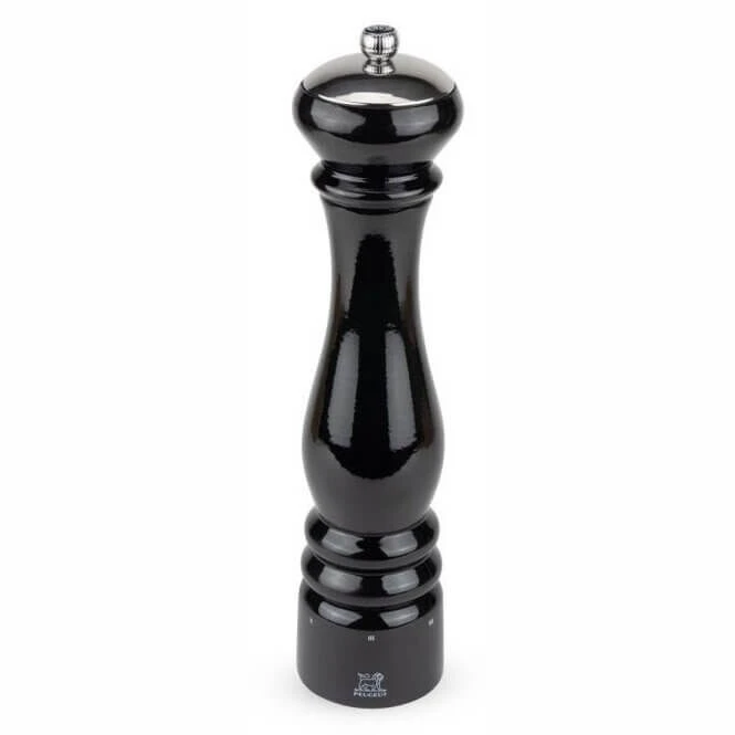 De Peugeot Paris Ic么ne Noir pepermolen heeft het klassieke Peugeot model dat is herzien. De molen is gemaakt van zwart gelakt beukenhout. Aan de bovenzijde heeft de molen een roestvrijstalen kap. Hierdoor krijg de 30 cm hoge molen een moderne uitstraling. Het maalwerk in de molen is vervaardigd uit roestvrij staal. De molen is voorzien van u-select, waarmee u de grofheid van de korrel traploos kunt instellen. Op de metalen draaiknop bovenop bevindt zich de het logo van Peugeot.