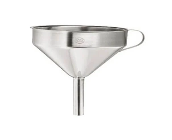 Met de trechter van Rösle vult u eenvoudig een fles, pot of sifon, zonder hierbij te morsen. Plaats de trechter op het gewenste product en schenk de vloeistof in de trechter.
