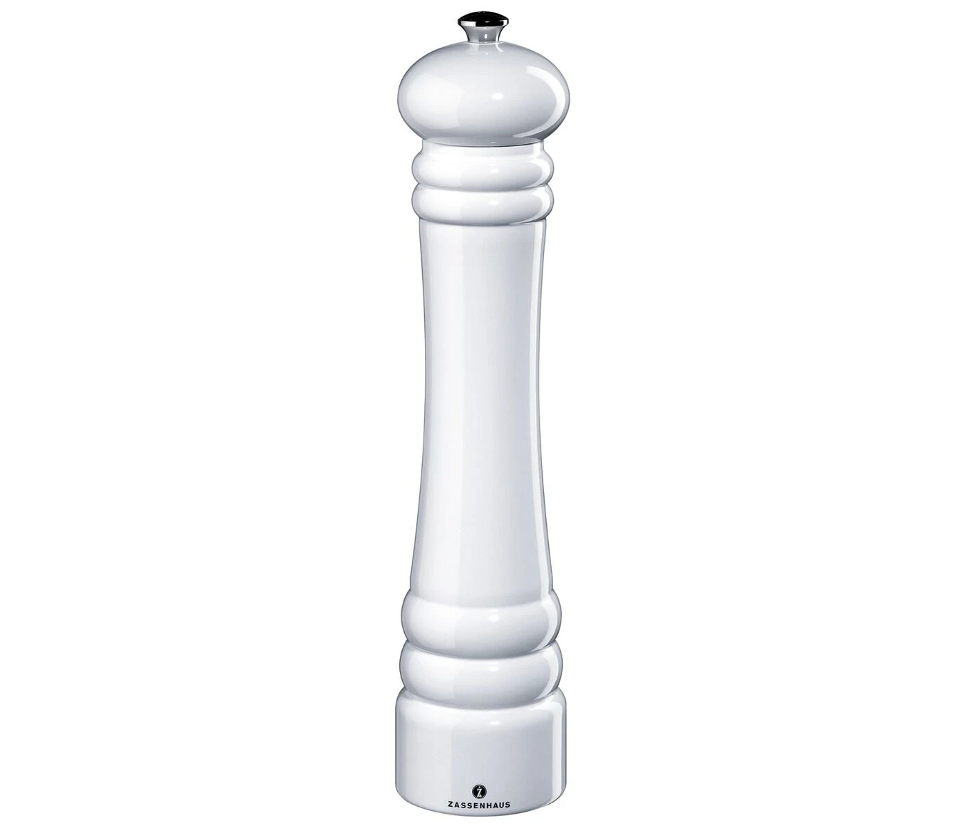 De Zassenhaus Berlin pepermolen glanzend wit heeft een klassiek uiterlijk. De pepermolen is glanzend wit gelakt en heeft een keramisch maalwerk. De pepermolen van Zassenhaus is 30 cm hoog, en heeft een diameter van 6,6 cm.