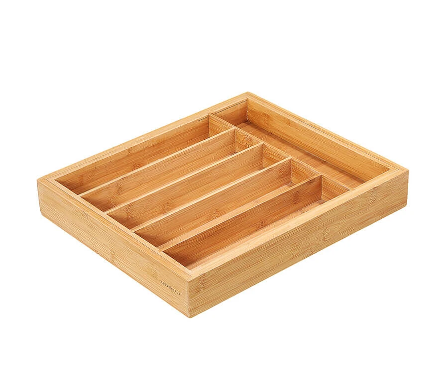 Geef al uw bestek en keukengerei een vaste plek in deze uitschuifbare Zassenhaus bestekbak. De bak is vervaardigd van duurzaam bamboe en heeft een afmeting van 34,5 x 40 x 6 cm. Met zes ruime vakken heeft u voor al uw gerei een handige plek.